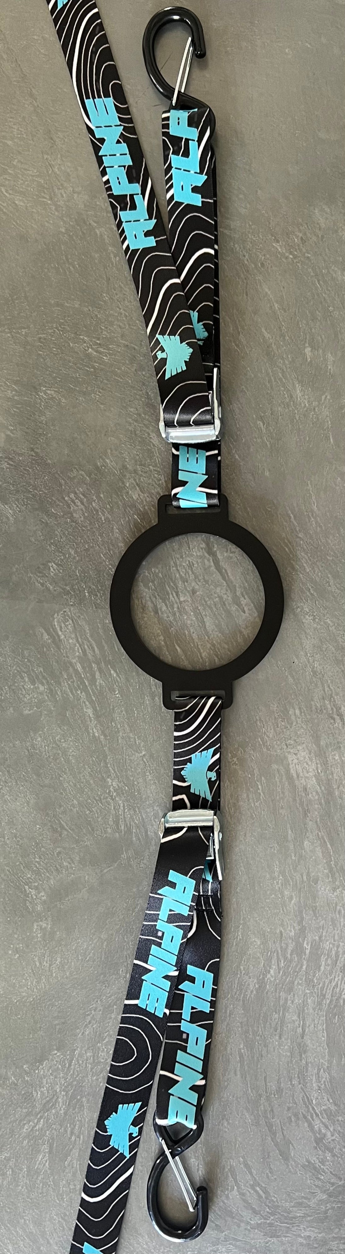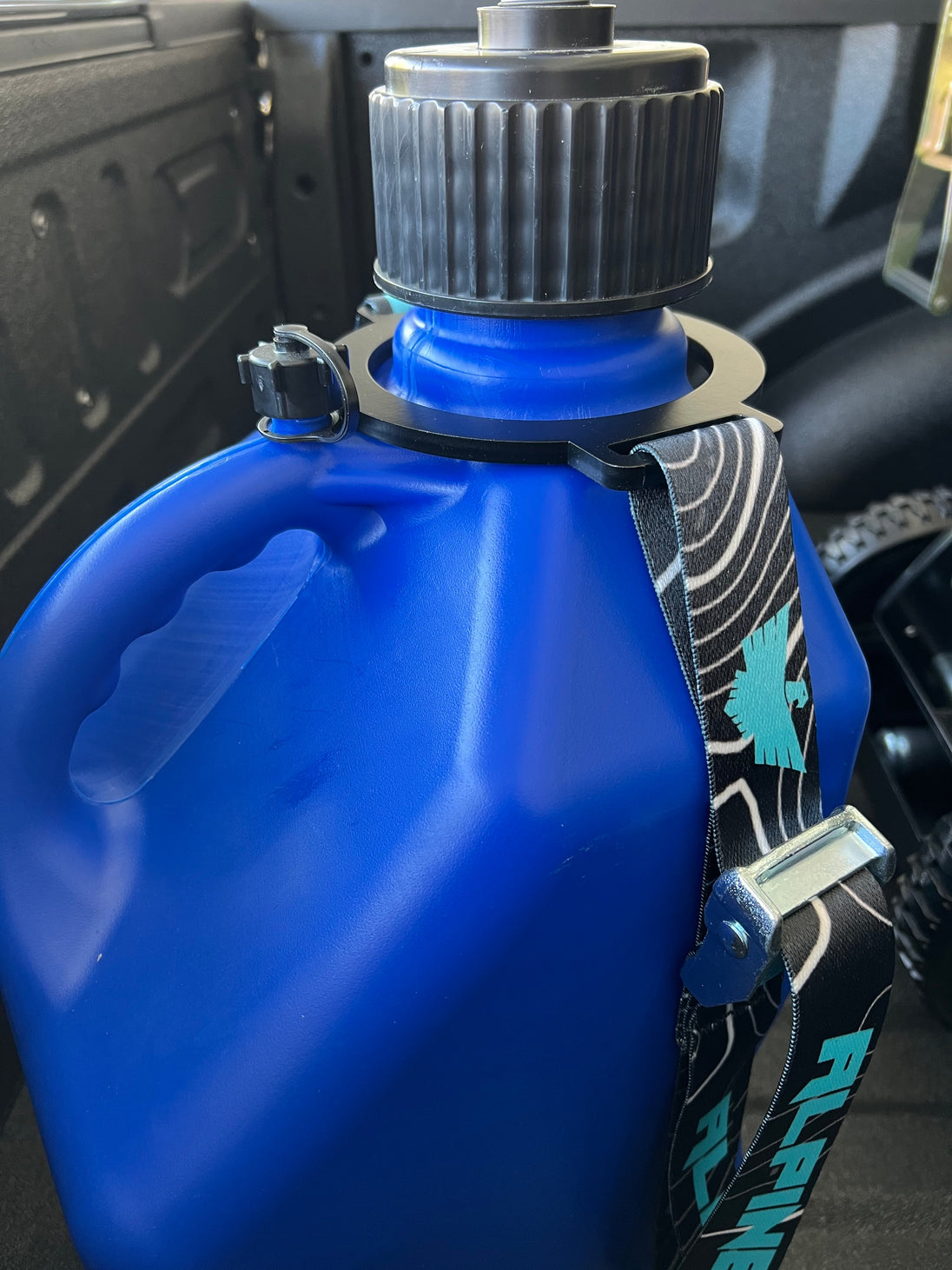 Alpine Ring Fuel Can strap was designed to secure 5 gallon gas cans in tire carriers or racks. Don not recommend for stand alone configurations. If using for stand alone configurations make sure gas can is secure before going Offroad with extra support in front of gas can.