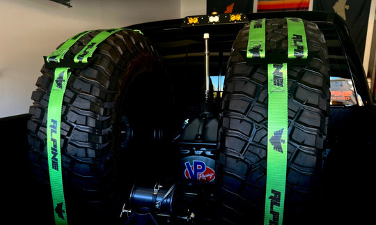 No reviewsAlpine Double Eagle Straps- Dual Tire Tie Downs Dual 8K Polyester Webbing Alpine Eagle Spreader Bar, semi-gloss powder coat Works with up to 44” Tires XL Heavy Duty Ratchet Webbing Cross-Member Support For Mounts towards...Regular price $150.00Regular price $150.00