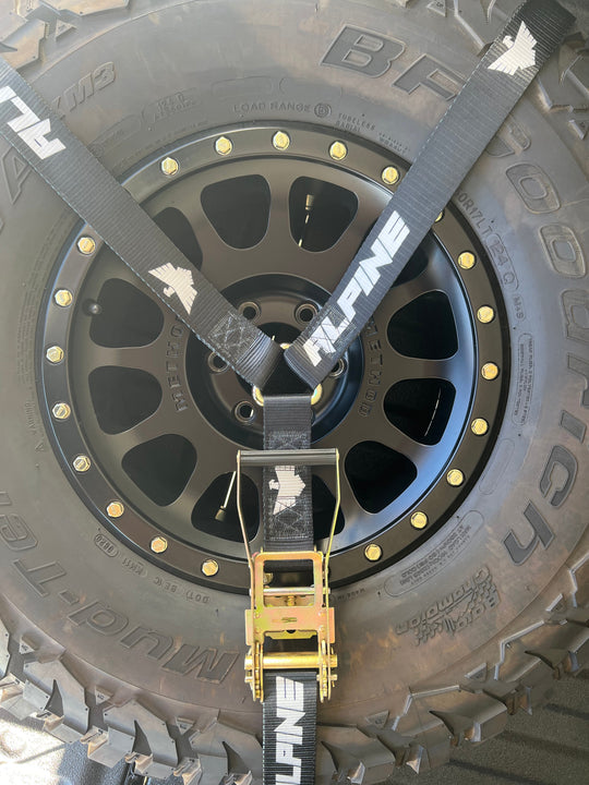 No reviewsY Strap 2” Width XL Heavy Duty Ratchet Industrial Twisted Snap hooks Industrial Delta Ring Will work with tires up to 44” Will work with dual stacked 37" tires Printed and assembled in United StatesRegular price $95.00Regular price $95.00 -