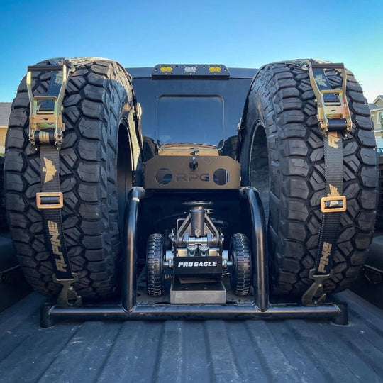 No reviews2” Tire Tie Down 8 ft length 2” Width 8K polyester XL Heavy Duty Ratchet Multiple End Hardware Options to fit any application Will work with tires up to 40” Made in the United StatesRegular price $75.00Regular price $75.00 -