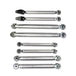 The JK ALUMINUM Mid Arm Kit starts with our 2.0" outer diameter, aerospace grade 7075 Aluminum lower links front and rear loaded and 1.5" OD upper links. The aluminum links are out-fitted with time-tested Rock Krawler brand Krawler Joints with a 1.25" thread on the lowers and 7/8" thread on the uppers with matching jam nuts. These are the same joints shipped in nearly every Rock Krawler lift kit so you know they stand up to the test of time and abuse...not to mention there are millions of them on the streets. Each link is threaded with both a Right Hand thread and a Left Hand thread at opposite ends so it is easy to adjust the length for fine tuning. We've also included wrench flats on each end of the aluminum link so you can easily tighten your jam nuts without marring the aluminum.