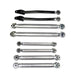 The JL ALUMINUM Mid Arm Kit starts with our 2.0" outer diameter, aerospace grade 7075 Aluminum lower links front and rear loaded and 1.5" OD Aluminum upper links in the rear. The upper front links are solid steel links directly used in Rock Krawler suspensions. The aluminum links are out-fitted with time-tested Rock Krawler brand Krawler Joints with a 1.25" thread on the lowers and 7/8" thread on the uppers with matching jam nuts. These are the same joints shipped in nearly every Rock Krawler lift kit so you know they stand up to the test of time and abuse...not to mention there are millions of them on the streets. Each link is threaded with both a Right Hand thread and a Left Hand thread at opposite ends so it is easy to adjust the length for fine tuning. We've also included wrench flats on each end of the aluminum link so you can easily tighten your jam nuts without marring the aluminum.