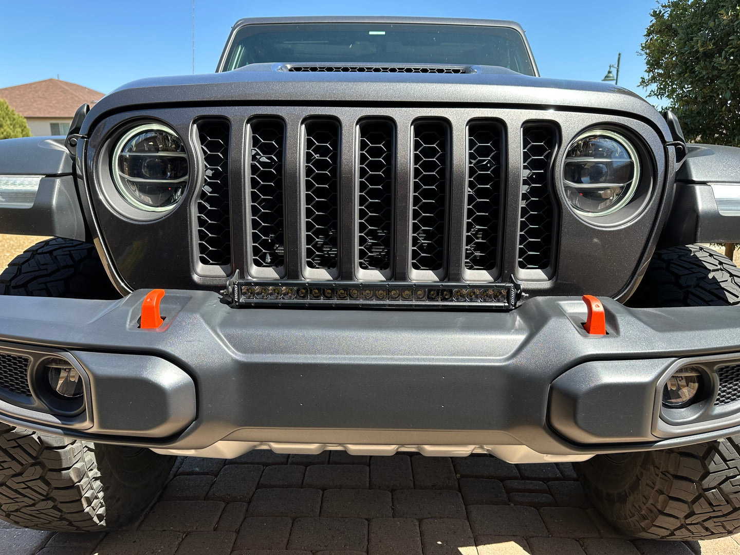 Enhance your Jeep's presence with Artec's JL & JT Front Bumper 20in LED Light Mount, engineered for most 20in LED light bars, including Rigid & Baja Designs. Constructed with 10-gauge steel and CNC expertise, including Dimple Die, this mount ensures precision and rigidity. Quick 15-minute installation, elegant OEM black finish, and a proud made in the USA mark amplify your ride's appeal. Choose Artec and drive with style, strength, and confidence.