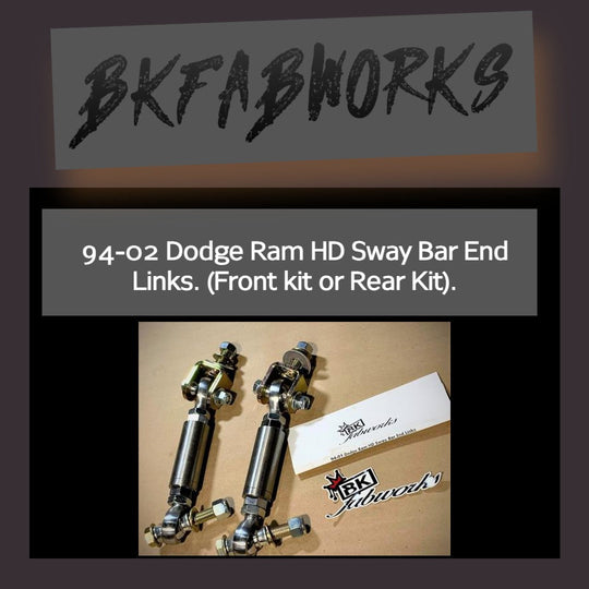 No reviewsUpgrade your factory 94-02 Dodge Ram sway bar end links with this kit for either the front or rear mounting location. The kit includes 4 3/4 heated treated Heim joints with LH & RH threads...Regular price From $235.00Regular price From $235.00 -