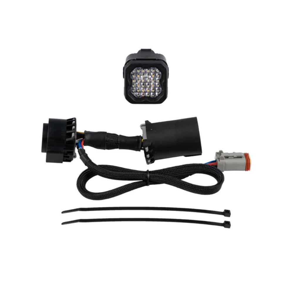 Overview. Add significantly more light output when backing up at night with our Stage Series HitchMount Reverse Light Kit! This kit allows you to mount one C1R LED pod in your 2-inch trailer hitch receiver, adding a high-power reverse light, additional running light, and 4th brake light. With the included wiring harness, this kit connects to your vehicle's factory connectors under the bumper for simple, everyday operation.