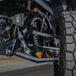 This suspension system allows for several different options to suit your needs. The coilovers can be installed with one of the following options, sway bar, bump stops, or bypass shocks. We offer a sway bar kit that adapts our long travel kit to work with the factory sway bar. This will give the vehicle similar on road driving characteristics to stock with minimal sacrifice to the suspension systems performance. The next option is installing bump stops. They will help dampen hard impacts and are cost effective but on the other hand are often noisy. The last option is most commonly used. Adding bypass shocks will fine tune the damping throughout the suspension cycle. They are also completely adjustable to perfect the ride quality.