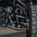 This suspension system allows for several different options to suit your needs. The coilovers can be installed with one of the following options, sway bar, bump stops, or bypass shocks. We offer a sway bar kit that adapts our long travel kit to work with the factory sway bar. This will give the vehicle similar on road driving characteristics to stock with minimal sacrifice to the suspension systems performance. The next option is installing bump stops. They will help dampen hard impacts and are cost effective but on the other hand are often noisy. The last option is most commonly used. Adding bypass shocks will fine tune the damping throughout the suspension cycle. They are also completely adjustable to perfect the ride quality.