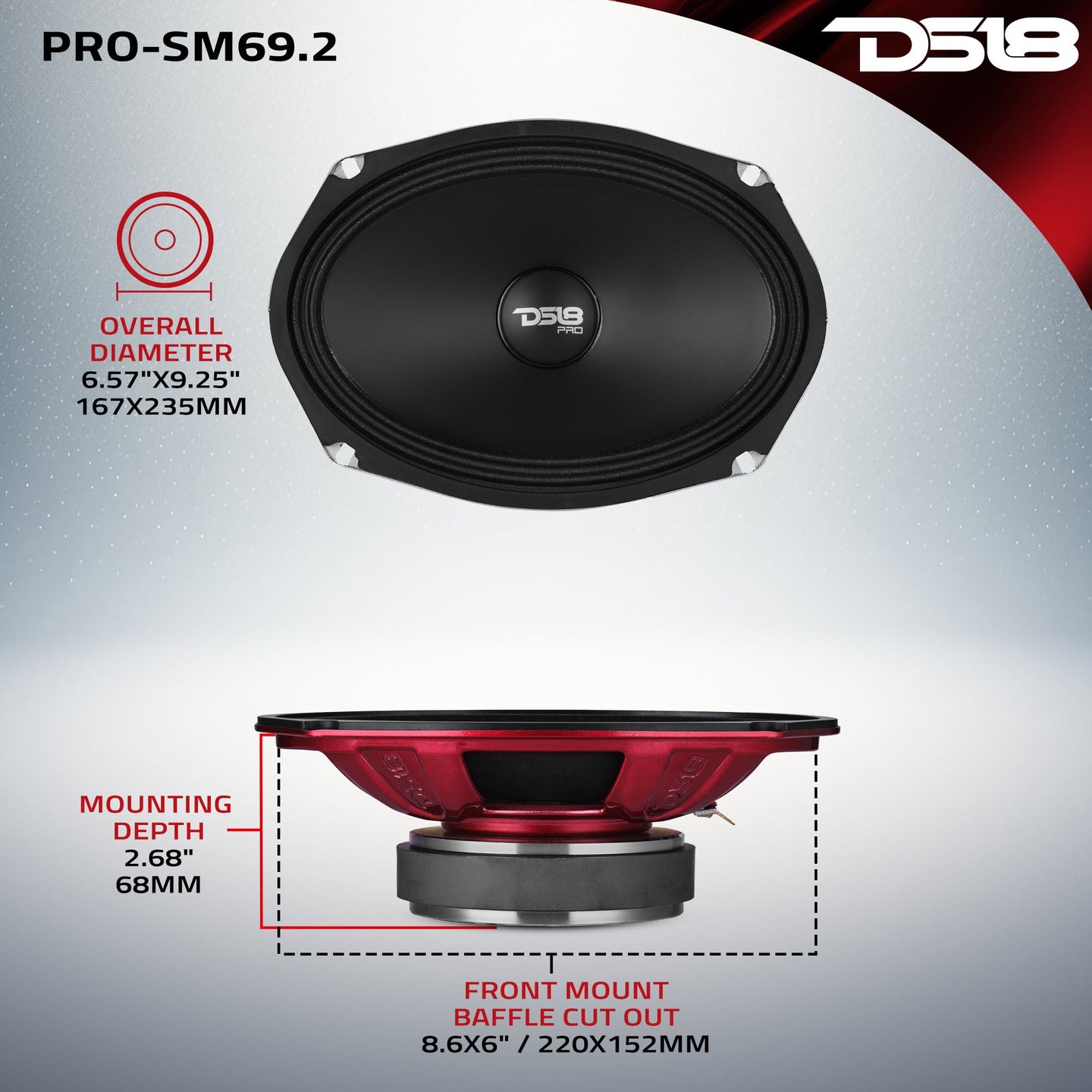 DS18 PRO-SM69.2 6x9" Shallow Water Resistant Mid-Range Loudspeaker 500 Watts 2-Ohm