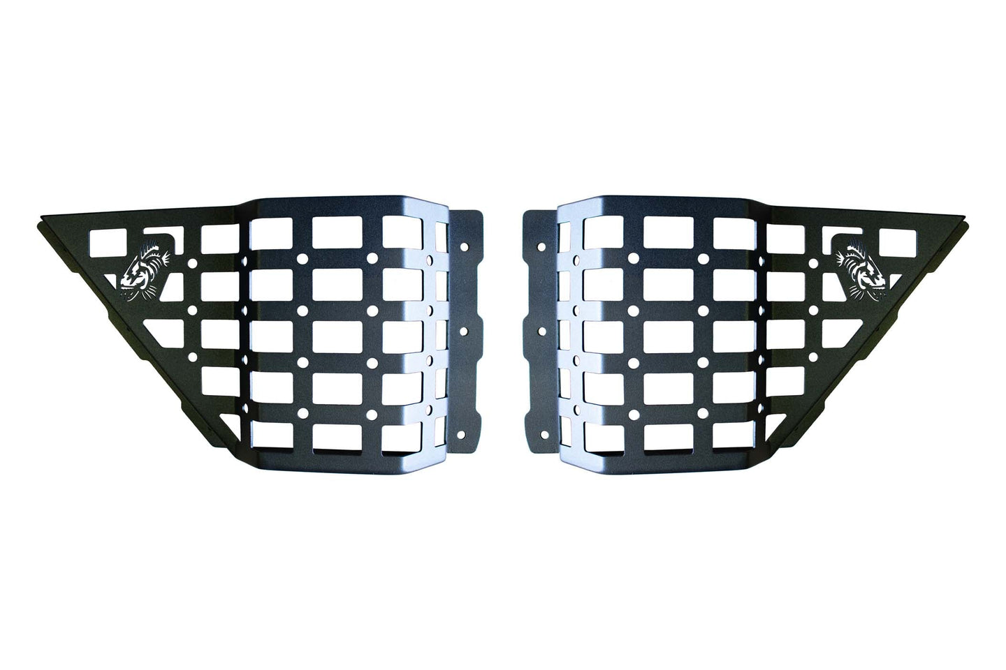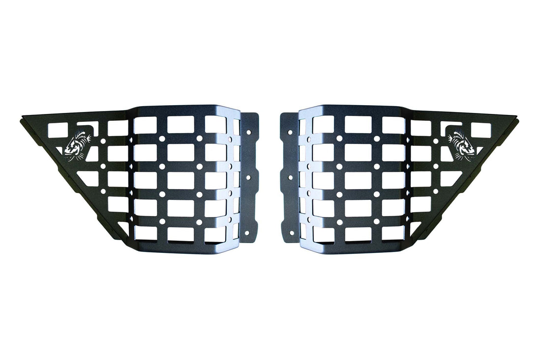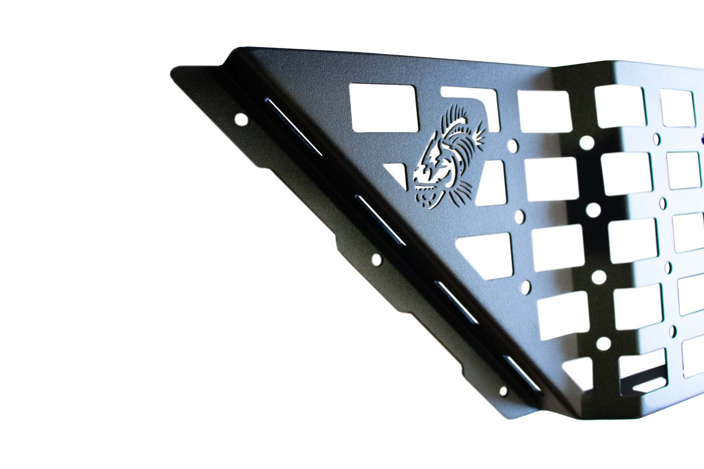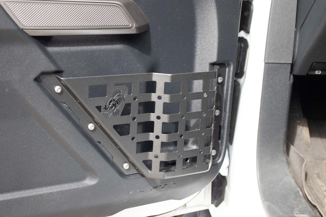 Upgrade your 2021+ Ford Bronco with our Front Door Pocket MOLLE Panels, the ultimate accessory for added storage and functionality. Crafted from rugged steel, these panels replace the factory door nets and create larger, more versatile door pockets. Store your essentials inside the pocket while mounting MOLLE-compatible accessories like pouches and tools on the outside.