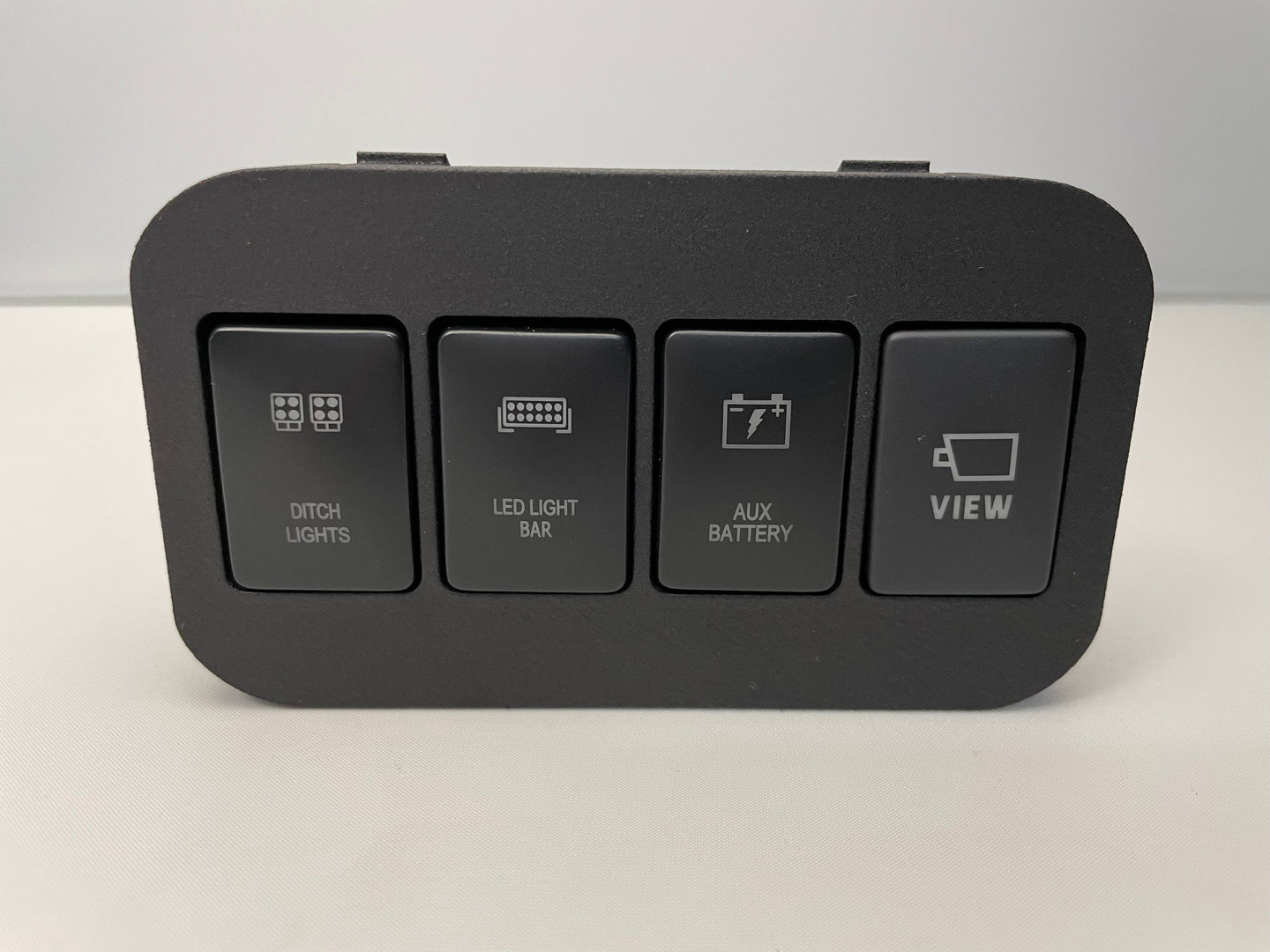 The Guild Outfitters, GO-002, modular insert exclusively fits all GO Base Left Switch Panels. This allows the addition of 4 Short ("Square") style switches while maintaining an original like look in your vehicle. This panel has the following switch openings: