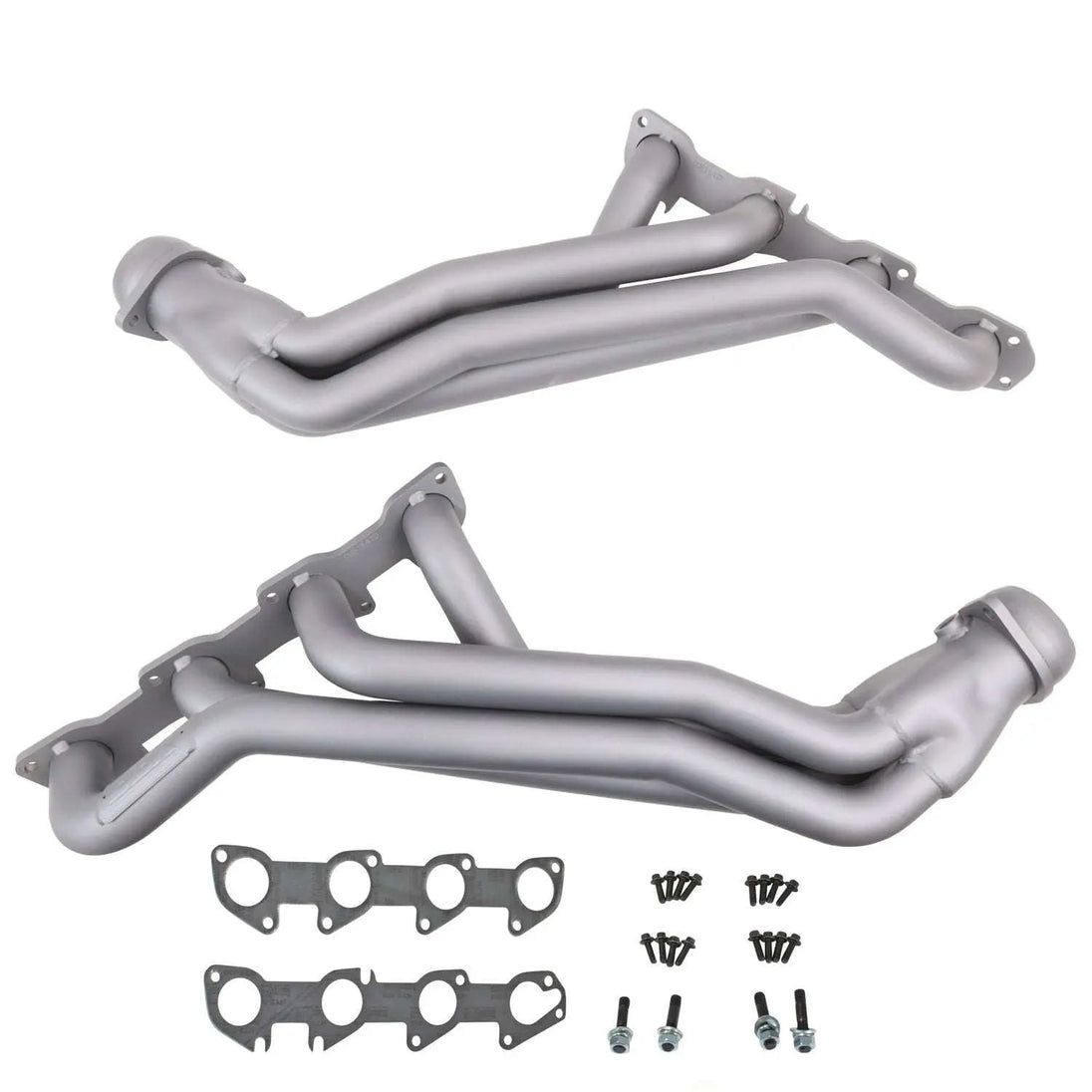 Quality Construction BBK full length HEMI muscle car headers are made from 1-3/4" CNC-machined mandrel bent tubing with 3/8" thick die-stamped flanges. The full length primary tube design creates unrestricted and balanced airflow for ultimate horsepower gains. These headers are pressure tested to ensure leak free performance.