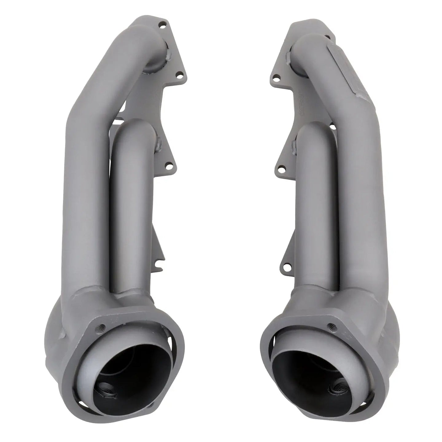 These BBK shorty headers will give your 5.7L Hemi a throaty exhaust note. The durable titanium ceramic coated finish holds in heat, improving power and reducing under hood temperatures.
