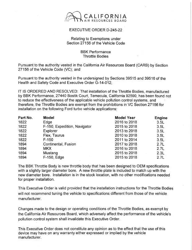- This part is C.A.R.B Approved. EO Number Is D-245-17 For the Mustang