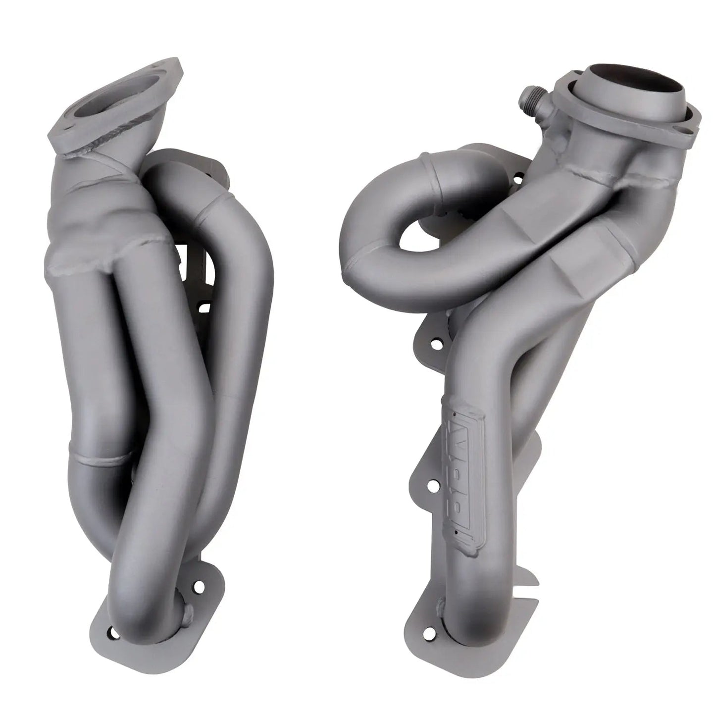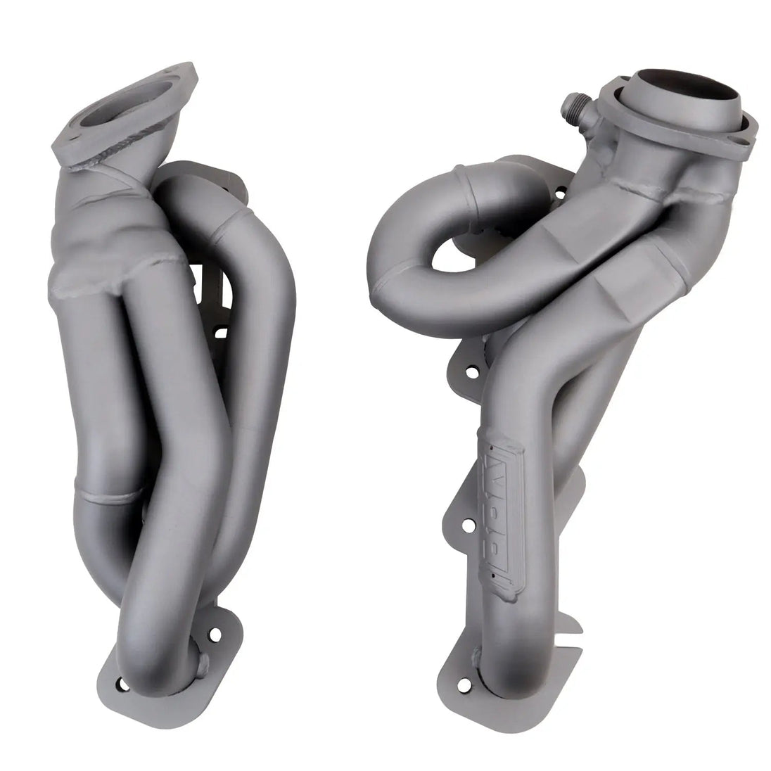 Increase the horsepower and torque output of your 1996-2004 Mustang GT with these titanium ceramic BBK Performance tuned length shorty headers. BBK Performance shorty headers will increase your exhaust flow giving you additional horsepower and torque. Shorty headers will give your Mustang a throaty exhaust note. The titanium ceramic coated finish improves durability and holds in heat to reduce underhood temperatures for more power.