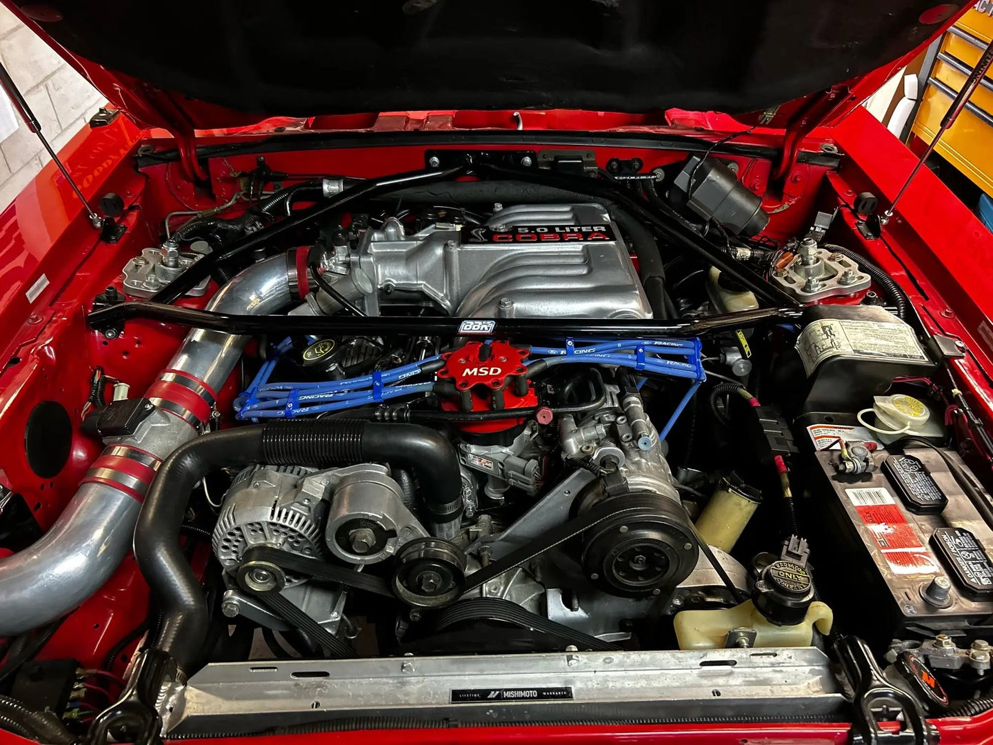 The BBK Gripp Strut Tower Brace for 1986-1993 Ford Mustang 5.0L increases chassis rigidity, reducing chassis flex and improving handling responsiveness. This Mustang strut tower brace is designed to clear the factory intake manifold as well as most aftermarket manifolds and cold air intakes.