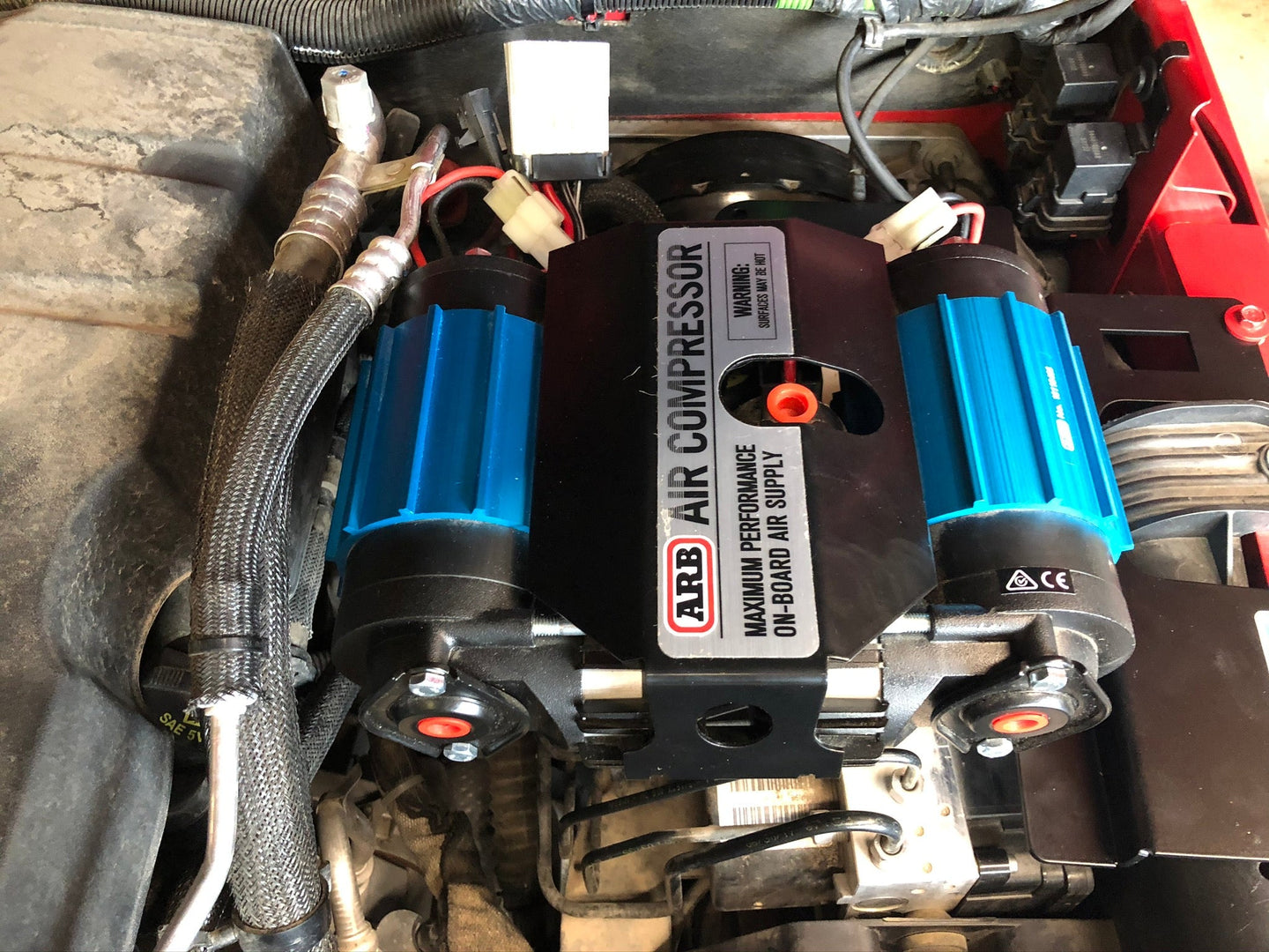 .With the ARB dual air compressor you can air up a 37" tire from 10 to 20 pounds just over 1 minute so you can get back on the road quickly. Easy install using factory holes. Powder coated black or red.
