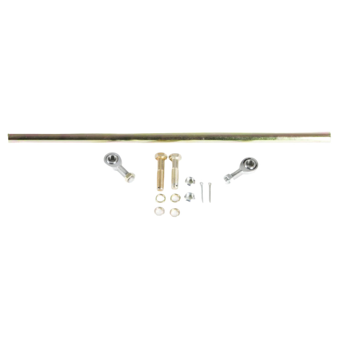You can now replace the stock wimpy drag link on your 1972-1986 Jeep® CJ with our Heavy-Duty Tie Rod link Kit. Manufactured from 1" O.D. x .219-wall DOM steel tubing, threaded on each end for 5/8 left and right rod ends, with wrench flats on each end. The rod ends are race-car quality, Teflon®/Kevlar® lined, self-lubricating and the alloy steel heat treated body is plated for durability. Rods will mount over or under the knuckles, and you must drill the stock tapered hole to a straight 5/8" hole.