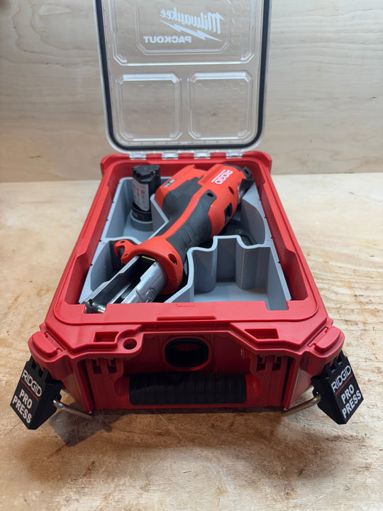 + 2 moreThis insert is designed to hold the Ridgid Mini Pro Press KIT MODEL 72553. It includes dedicated spots for: Model 115 Mini Pro Press 3/4" Propress jaws 1/2" Propress jaws (2) Ridgid 12v batteries It is...Regular price From $50.00Regular price From $50.00 -