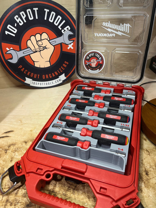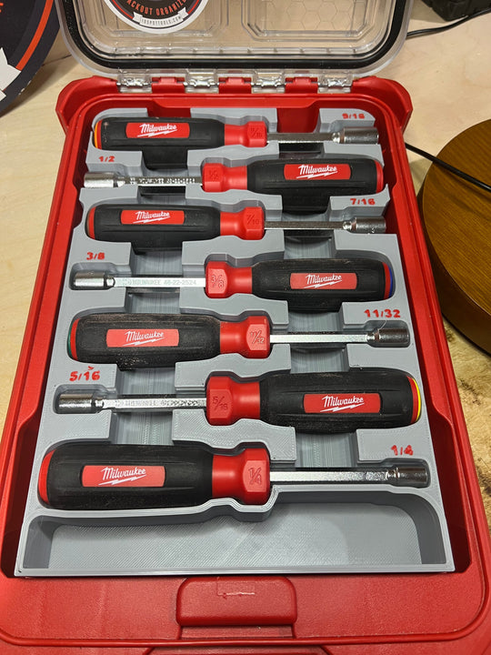This insert is designed to hold: Milwaukee 7-Piece SAE HollowCore Nut Driver Set 48-22-2507 It fits in: 5-Compartment Low Profile Packout Oganizer 48-22-8436 11-Compartment Low Profile Packout Organizer 48-22-8431 It is available with a 5-Compartment Packout...Regular price From $45.00Regular price From $45.00 -