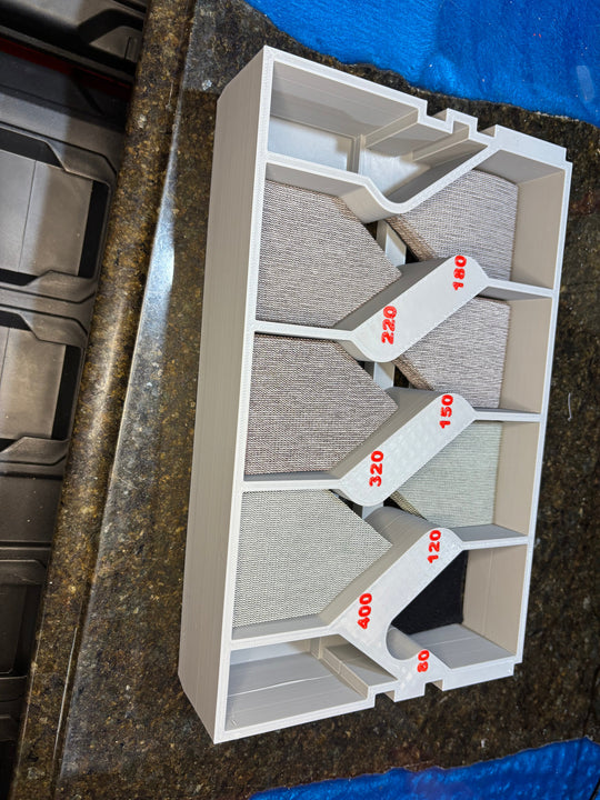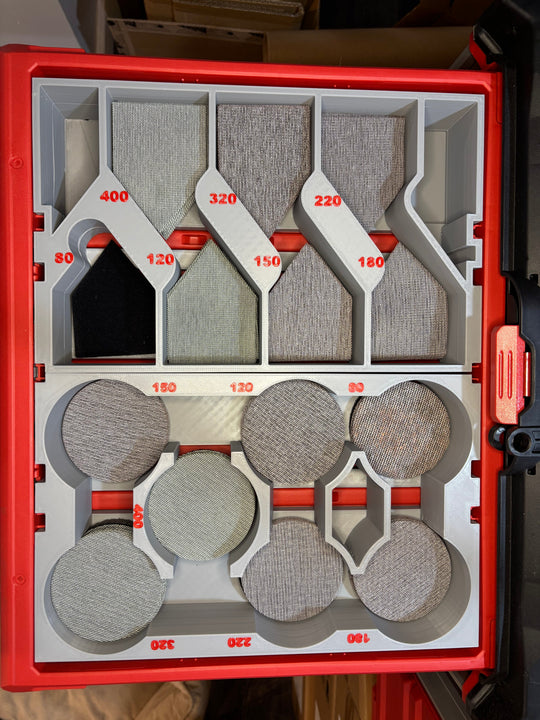 This insert is designed to hold TONS of delta sandpaper for the M12 Detail Sander (2531) and keep them organized by grit. It includes a legend for the following grits: 80 120 150 180 220 320...Regular price From $50.00Regular price From $50.00 -