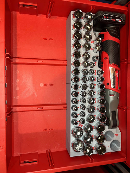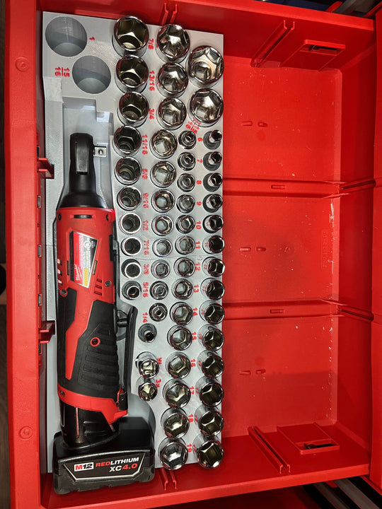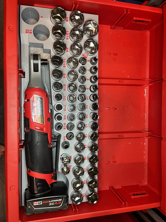 This insert was designed to hold ANY ONE of the following ratchets: M12 FUEL 3/8" High Speed Ratchet 2567 M12 FUEL 3/8" Ratchet 2557 M12 3/8" Ratchet (brushed) 2457 As well as: Milwaukee 56-Piece Chrome Socket...Regular price $60.00Regular price $60.00 -