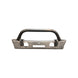 The bull bar is made out of 1 3/4 inch DOM steel tubing. This is the same material used for roll cages and tube chassis so it is built for strength. The shorter design of the bull bar provides good looks and protects your winch.