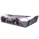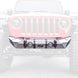The ends of the Hammer bumper taper up for tire clearance. Each cut in the bumper was intentional to keep it tight to the frame rail for a better approach angle. The main construction of the bumper is fabricated from 3/16 inch thick high strength steel plate. The bumper also serves as a winch mount. The top side of the JK The Hammer Bumper has bolt holes for a recovery winch.