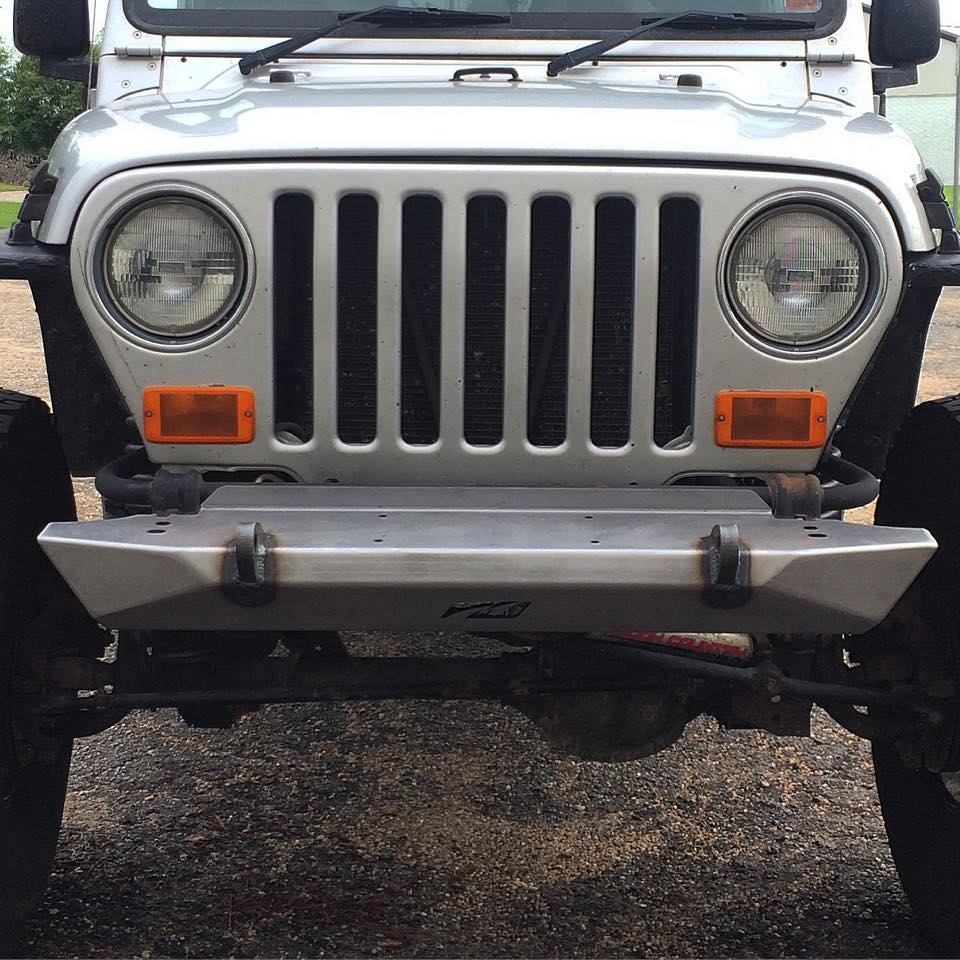 Check out the Motobilt Jeep YJ / TJ / LJ 42 inch wide mid width rock crawler bumper. Motobilt offers high quality hand fabricated products for your Jeep. We utilize CNC cutting and forming operations for precision but the welding and finishing is completed by hand in our shop. We take pride in offering Made in the USA products. The Motobilt Jeep YJ / TJ / LJ Mid Width Front Bumper measures 42 inch wide. It incorporates bolt locations for your favorite winch. The bumper is fabricated from 3/16 inch high strength steel plate. The bumper features 3/4 inch thick d-ring mounts. The d-ring mounts pass through the bumper and are welded on both sides for added strength. The bumper bolts on using four bolts on the top side of the frame and two bolts on the bottom of the frame. The bumper does not include hardware to bolt on. The bumper is shipped bare steel for you to paint or powdercoat to the color of your choice.