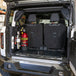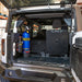 The 2 door Bronco Plate is driver side only so it does not block the cubby or interior light on the passenger side. It is completely bolt-on, utilizing the hardware holding the top on and the cargo tie downs. Modification to the plastic trim is optional. Four mounting points ensure an extremely rigid and robust mount. In addition to mounting a Power Tank, there are Fire Extinguisher Bracket mounting holes (optional) and MOLLE/PALs cutouts to attach additional storage (sold separately).
