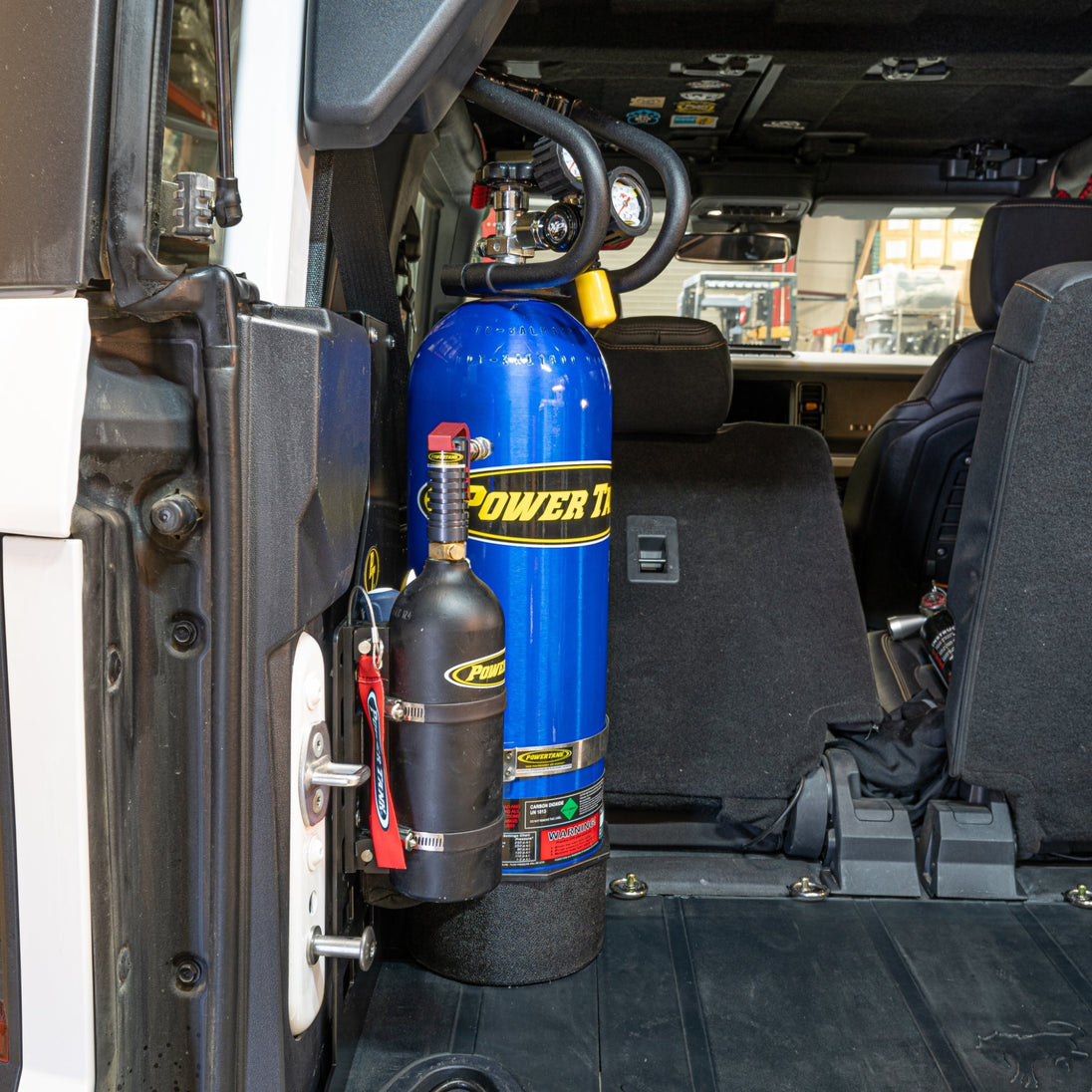 Two essential upgrades that should be in every Bronco that spends life in the dirt are a Power Tank and a fire extinguisher. Fortunately, our 2 Door Bronco Plate provides a mounting solution for both.