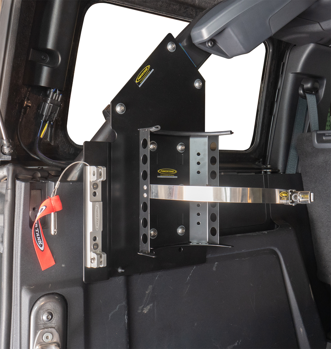 The best part is that this bracket is STOUT. When properly mounted, you can rock the whole vehicle just by shaking your Power Tank. This gives you peace of mind when you're bombing across the open desert. The strength comes from a hardened steel frame and billet roll bar clamps. The roll bar clamps can be used on their own as a base to mount other accessories.