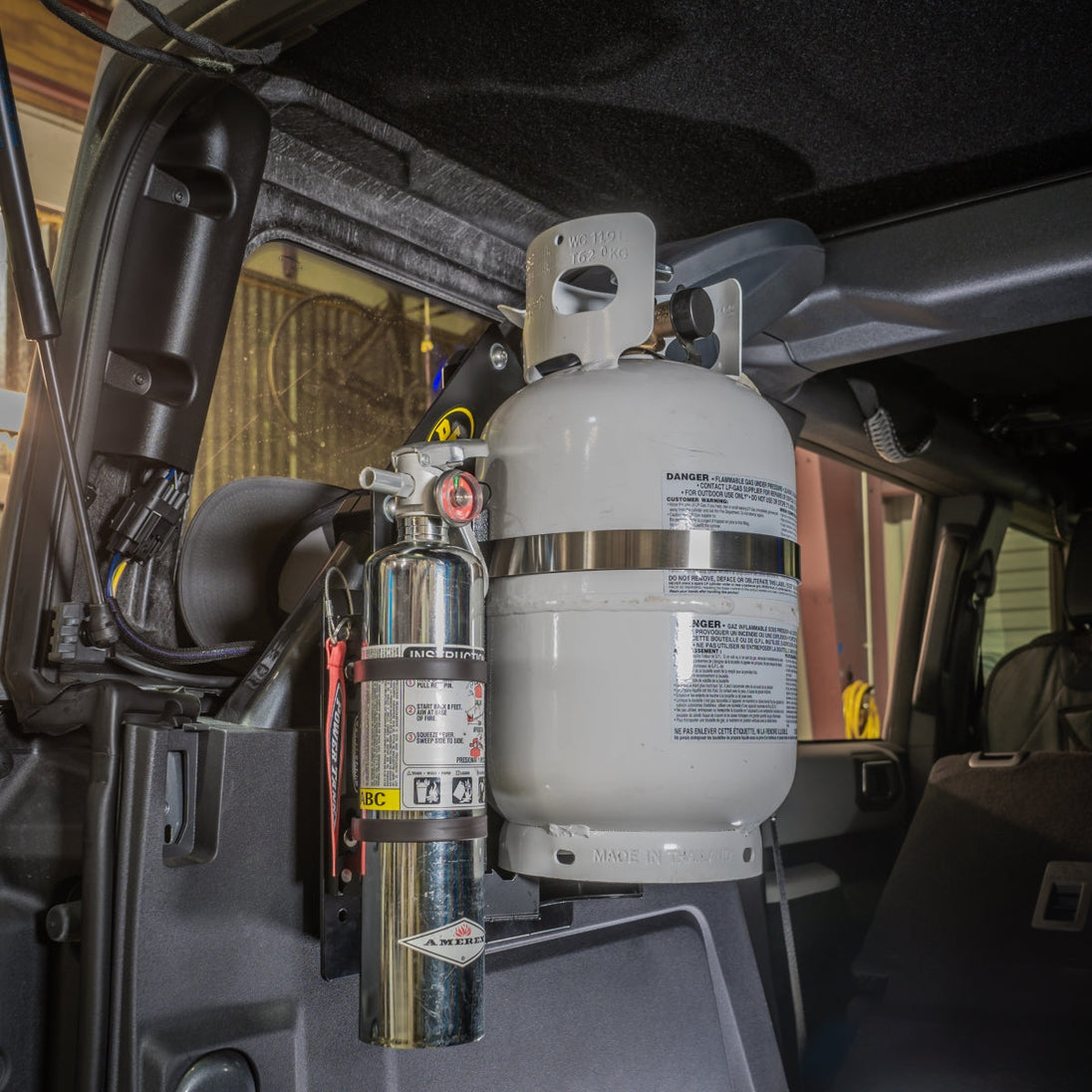 Two essential upgrades that should be in every Bronco that spends life in the dirt are a Power Tank and a fire extinguisher. Fortunately, our 4 Door Bronco Plate provides a mounting solution for both.
