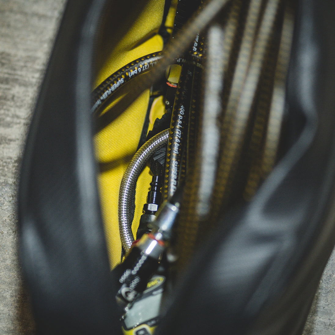 The carbon weave texture on the outside feels ultra premium, is easy to clean, and resists abrasion damage. The interior is yellow-lined so the tools you store inside are easy to find and 1/4" of foam padding all around protects those tools. A side zipper pocket offers additional organization and storage. All zippers are YKK and front and rear pull handles make these easy to grab, especially when you line multiple up, side by side.
