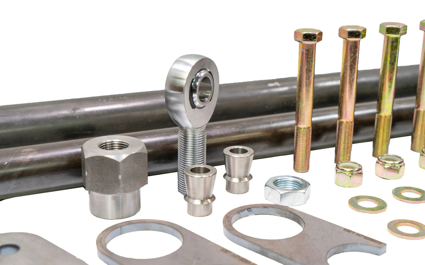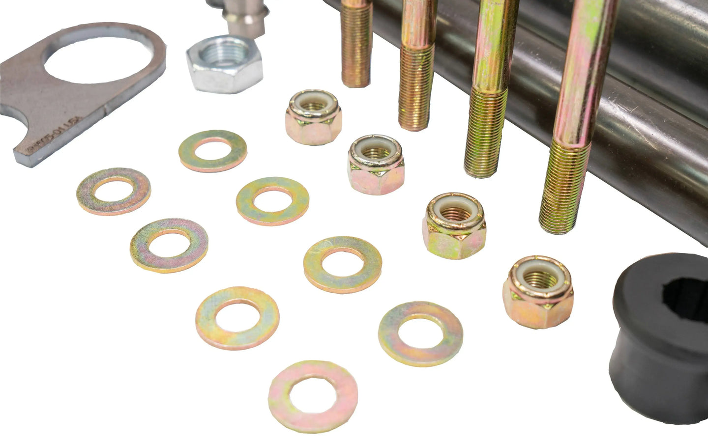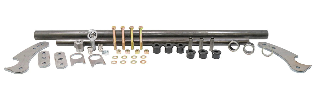This kit is built to handle extreme off-road abuse, with beefy 3/8" thick main plates and .250" wall tubing throughout. Designed for strength and durability, it includes everything you need for a complete traction bar system. Frame mounting tabs are radiused for 1.75" diameter tube, and all components come unwelded for maximum flexibility in custom fabrication. Multiple tube length and shackle length options make this kit adaptable to your build.