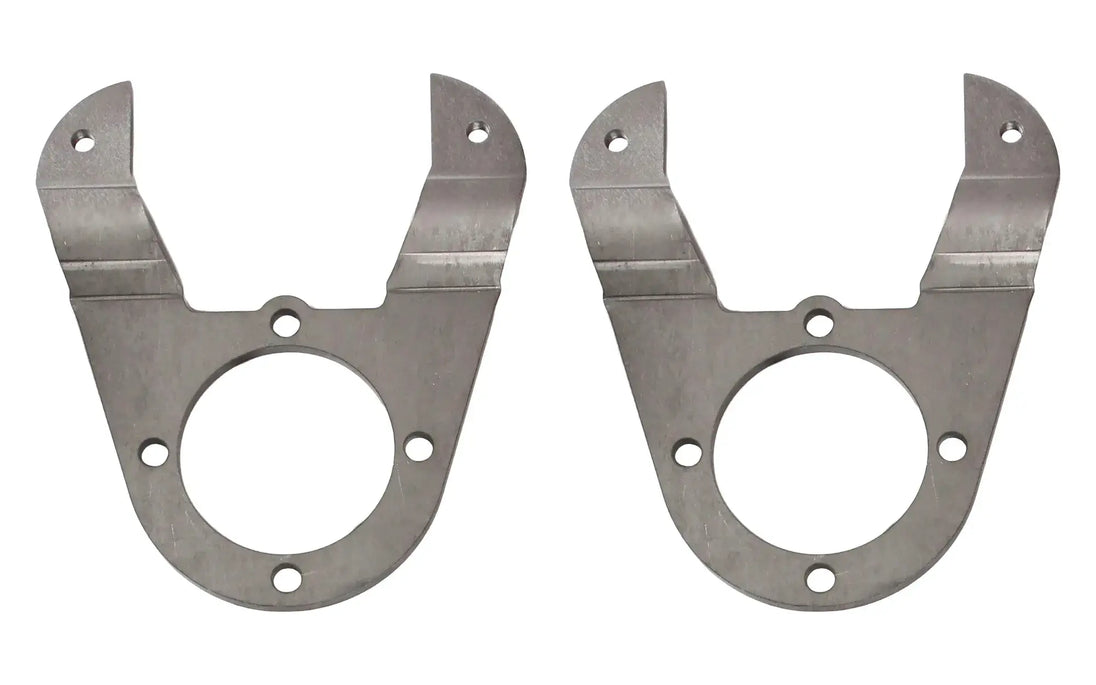 These brackets are based on our 14 Bolt design, which also fits the Eaton HO52/72 single rear axles used from 1965 to 1972. They’re built from 3/8" plate steel and eliminate the need for spacers, reducing both complexity and weight. These are designed to work with standard 1973–1987 Chevy 3/4-ton front calipers and rotors, with no extra mounting hardware required.