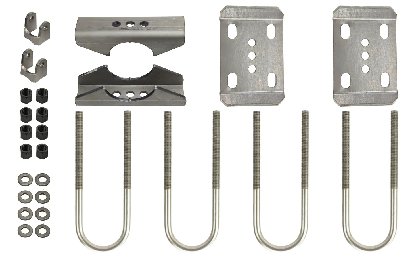 - Complete hardware kit with U-bolts, spring perches, washers, and 5/8 nut 18TPI