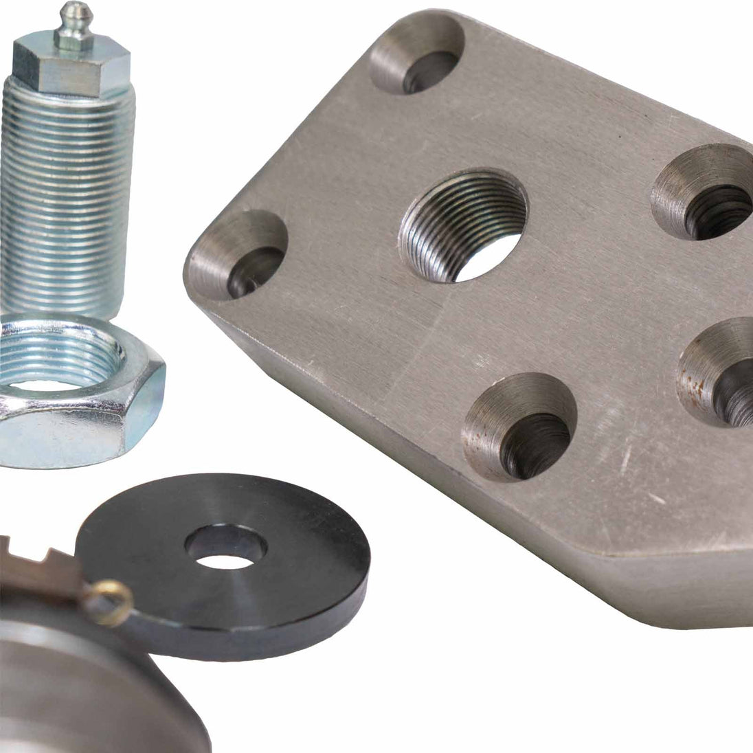 This kit is designed for kingpin Dana 60 front axles and eliminates the factory preload spring with our springless high steer arms—moving the tie rod up and out of harm’s way while increasing strength and adjustability. It's a true 1-ton crossover/high steer conversion with all the key parts in one package, ready to tackle serious off-road abuse.