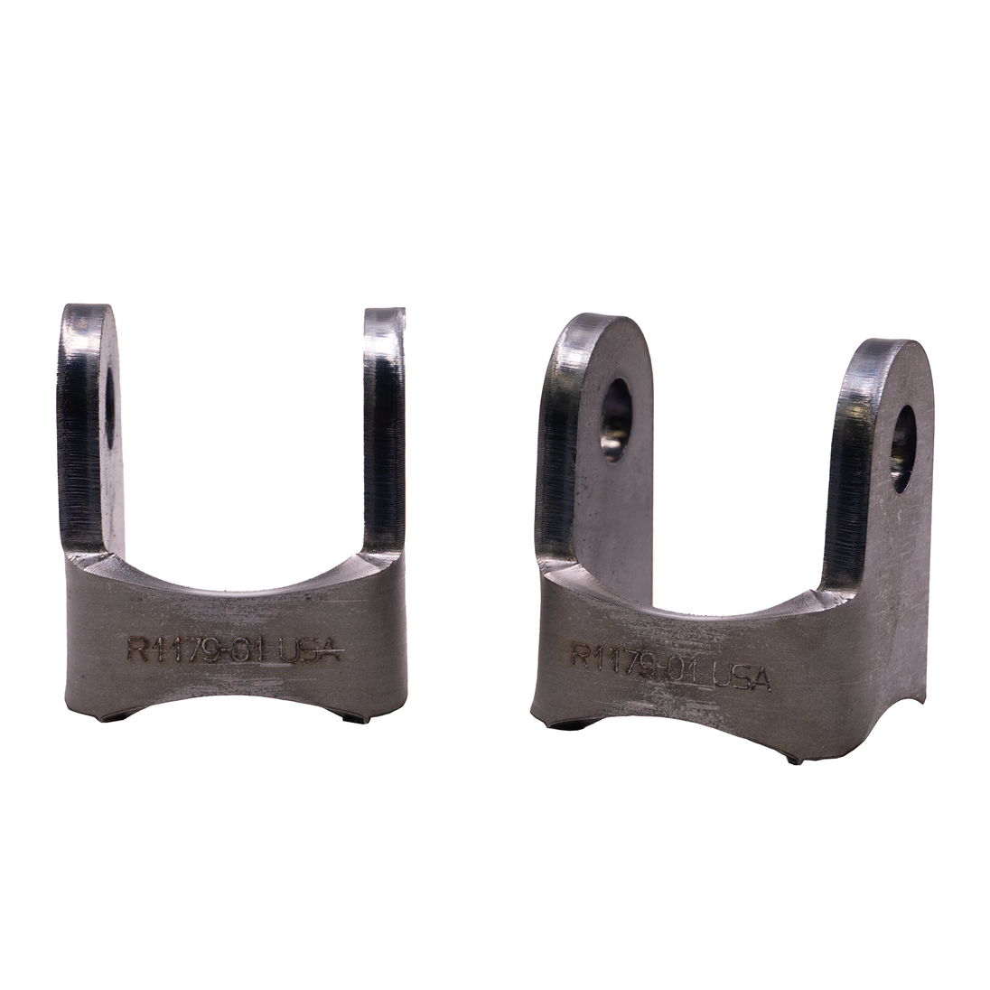 Made from 1/4" HR P&O steel, each bracket has a 1.5" inside mounting width and a 1/2" bolt hole. From the top of the tube radius to the bolt center measures 1.5". These are ideal for axle tube or crossmember shock mounting where strength and precision matter. Sold in pairs.