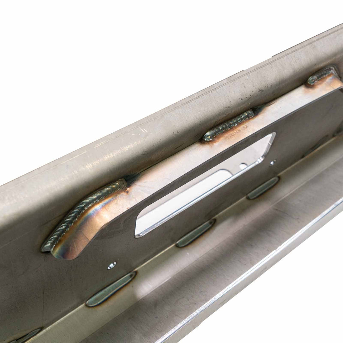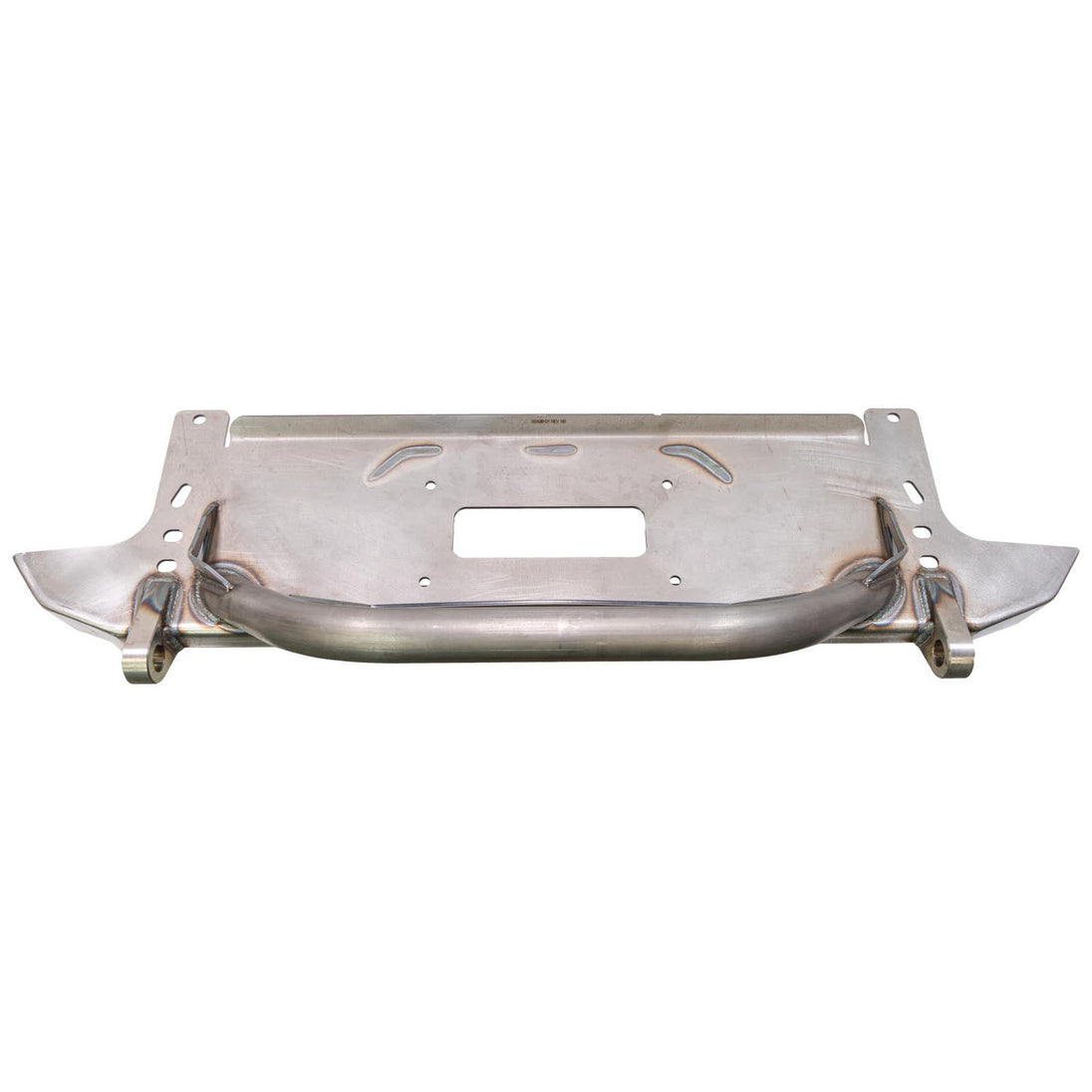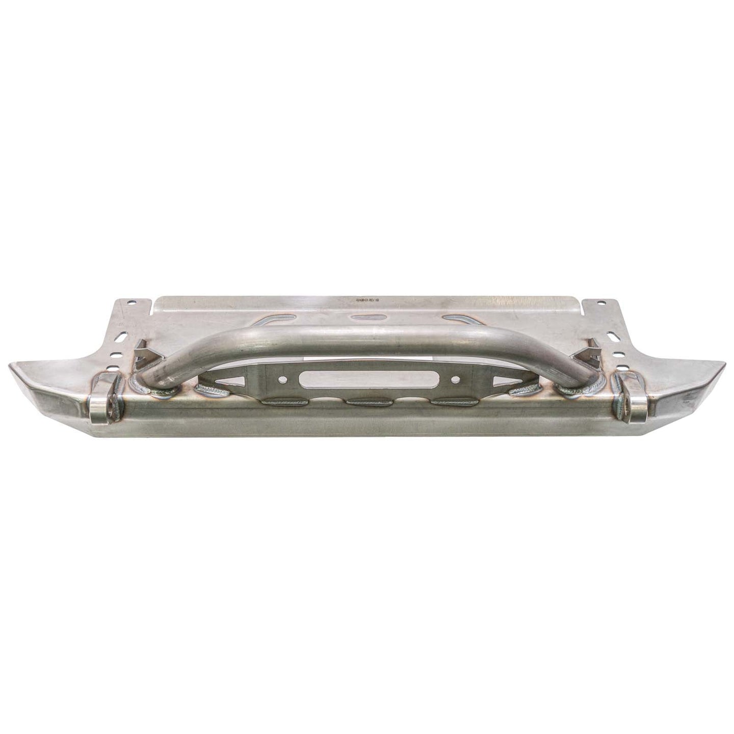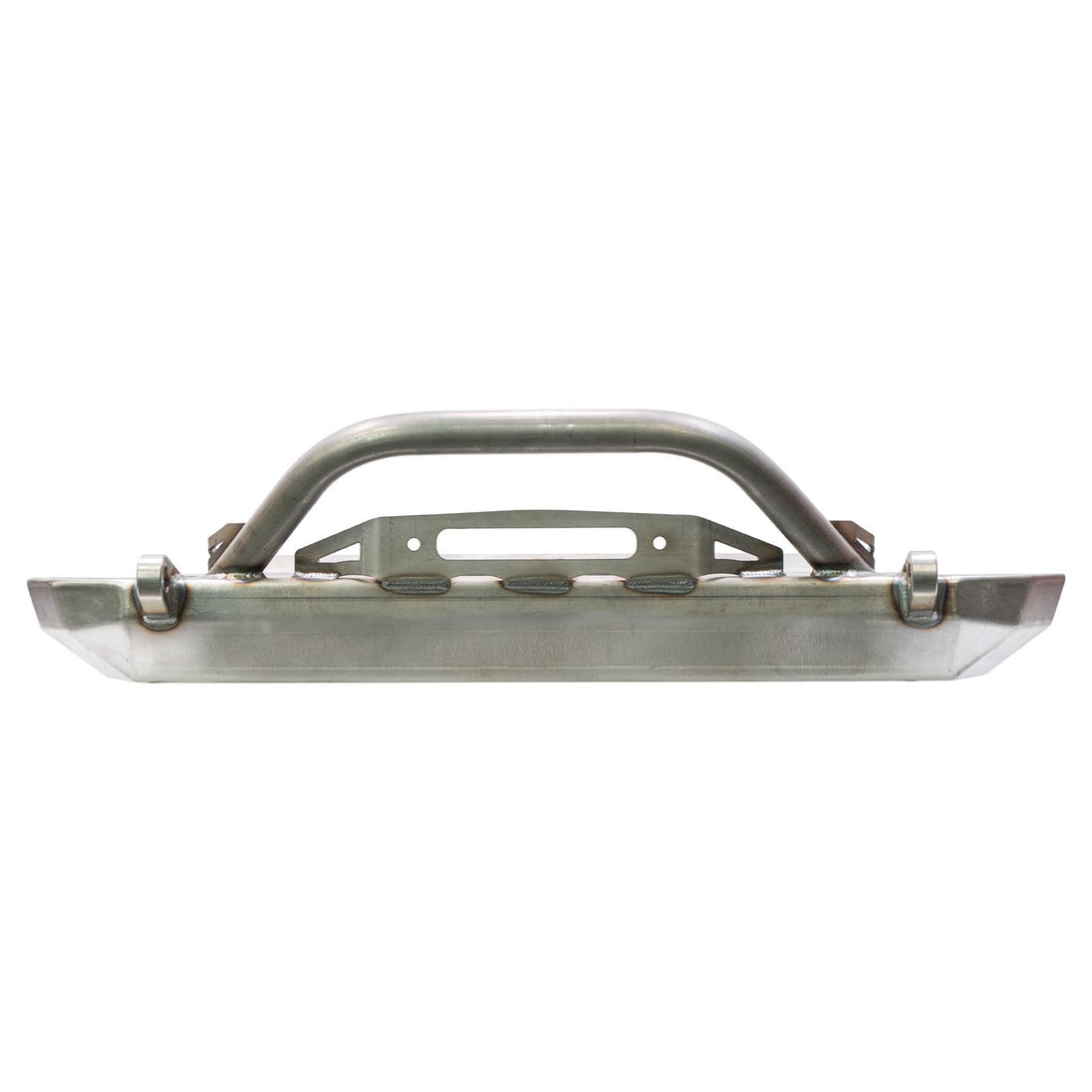 This Ruffstuff front bumper is built for Jeep TJ and LJ models, measuring 43-7/16" wide to balance cab protection with excellent approach angle. Constructed from 3/16" steel, it includes an integrated winch mount for popular winch models and a fairlead plate compatible with steel or synthetic line. Tow clevis mounts come standard, and the welded stinger provides additional protection on steep terrain and rollover insurance. The bumper ships unpainted, giving you the option to finish it to match your build.