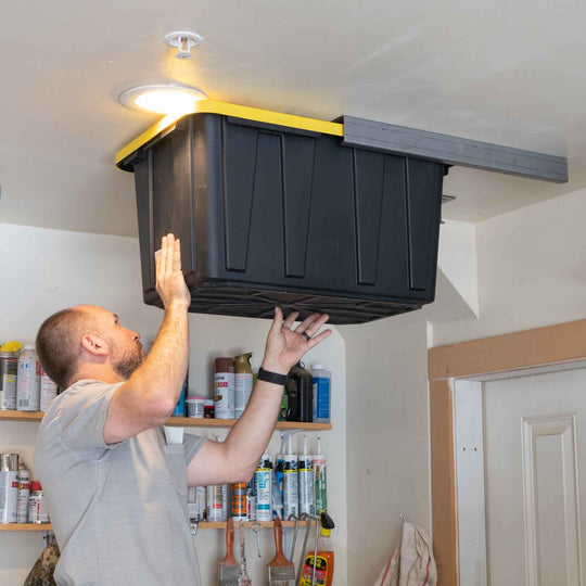 No reviewsStorage Bin Rails Ceiling-mounted storage rails for 27-gallon HDX storage bins. These storage bin rails solve the problem of cluttered garage and shop floors by moving your storage bins overhead. Perfect for organizing seasonal items, parts,...Sale price $22.95Regular price $27.00Sale price $22.95Regular price $27.00