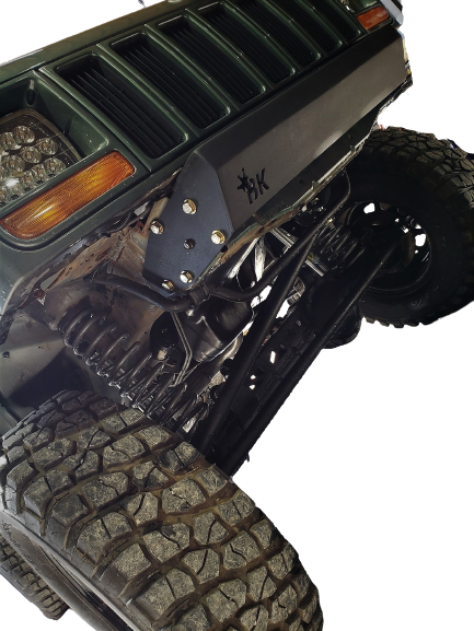 The Bkfabworks DIY Stubby Bumper Kit for 84-01 Jeep Cherokee XJ/Mj is made from 3/16" CNC cut steel, designed to be affordable and easy to install with basic tools and welding experience.