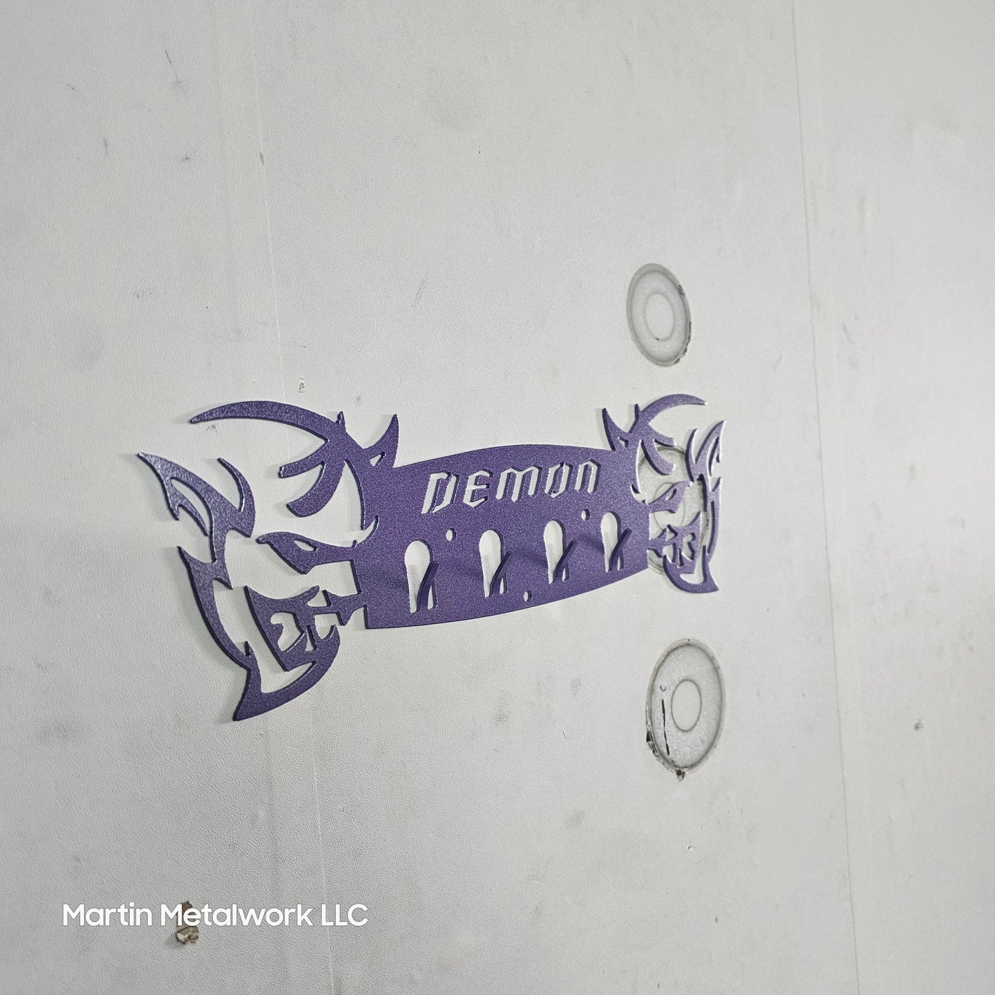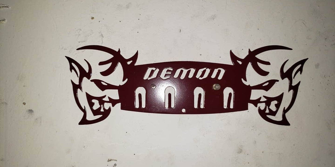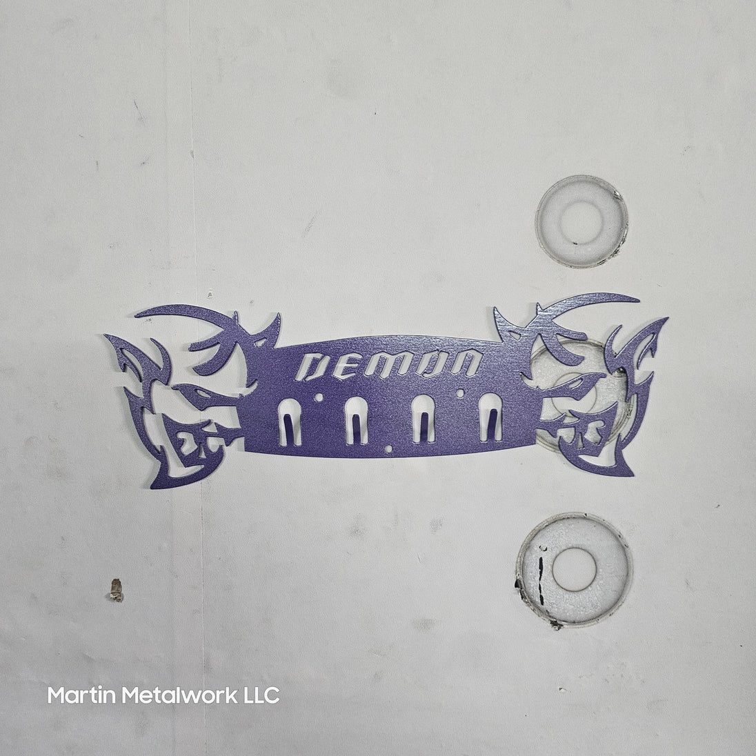 Dodge Demon Muscle Car Key Hanger – Steel Wall Mounted 4-Hook Key Rack – Garage Organizer 12"x4"