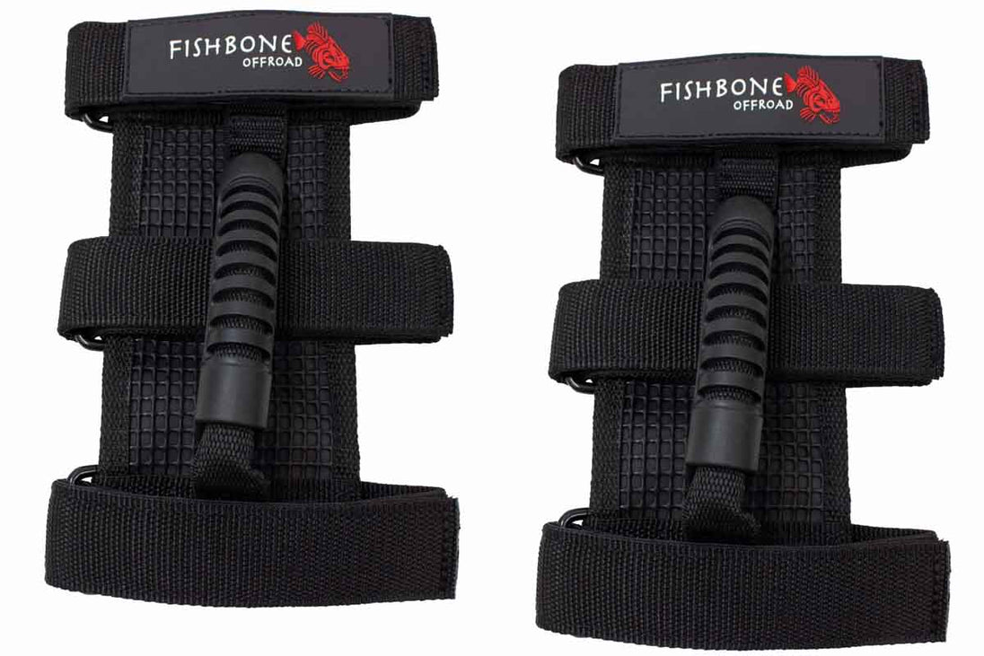 Presenting the stylish three-strap grab handle from Fishbone Offroad: the epitome of both form and function. Crafted with meticulous attention to detail, these Jeep Wrangler roll bar handles offer unparalleled stability, making it the premier choice for a movable grab handle. Whether your rig features padded or non-padded roll bars, installation is a breeze, ensuring a snug fit every time.