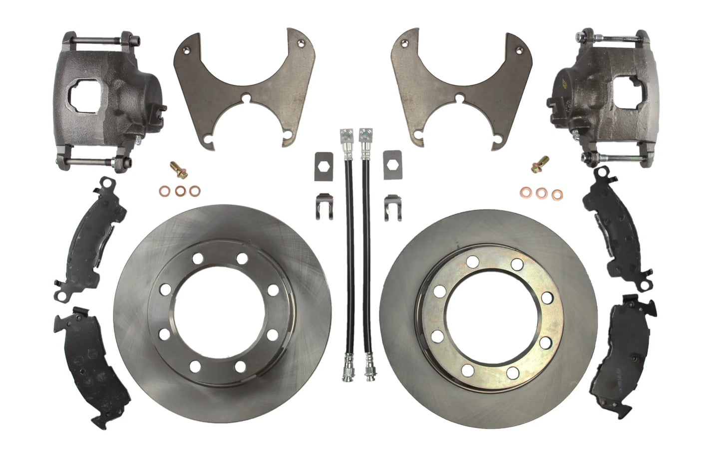 - Two caliper mounting brackets (driver and passenger side)