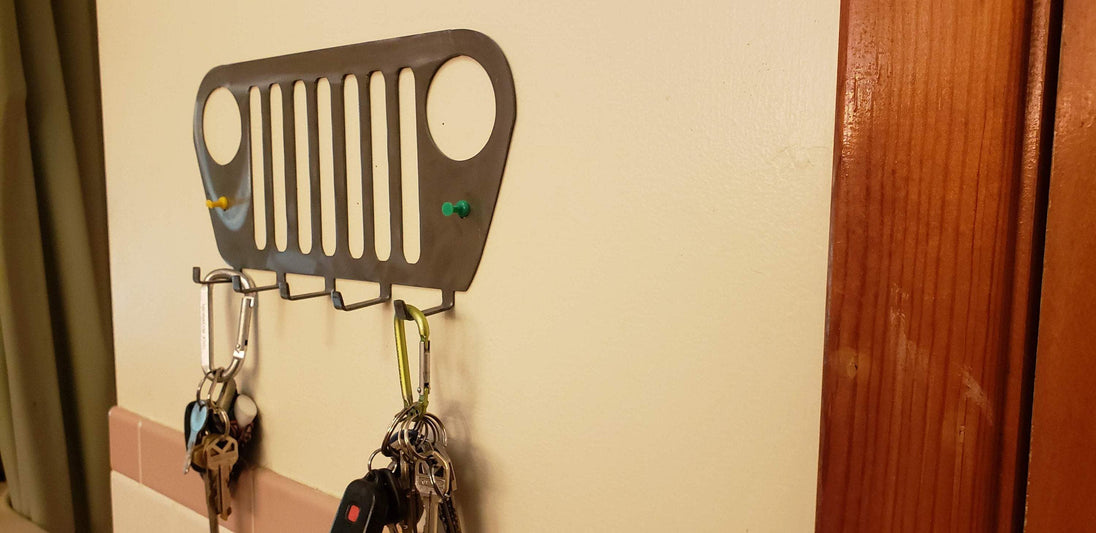 Adventure is calling! Keep your space organized with this Jeep Wrangler grill keychain rack, made from 14-gauge steel and inspired by the legendary offroad design.