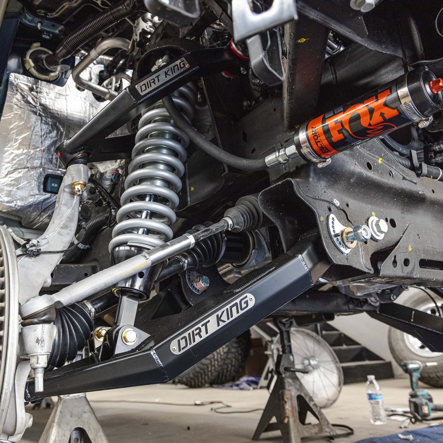 • Bed Cage Spec Fox 16" Triple Bypasses The Dirt King bed cage spec Fox bypass shocks are custom-tuned for optimal performance across varied terrain, offering a smooth yet progressively firmer ride, with easy adjustability.